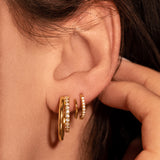 Unsere Vega Hoops strahlen vor Eleganz und interpretieren klassische Creolen auf einzigartige Weise. Die doppelten Creolen verleihen jedem Outfit einen Hauch von Glanz, bei Tag und bei Nacht.