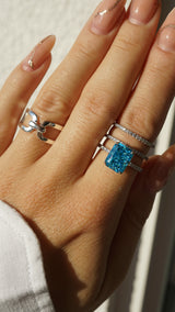 Diosa kombiniert sich durch das Einzigartige Design perfekt mit weiteren Ringen und passt sowohl perfekt zu einem cozy Lounge Outfit als auch zu einem Abendkleid. Ob verlobt, fake-verlobt oder single: Diosa ist das It-Piece 2021.